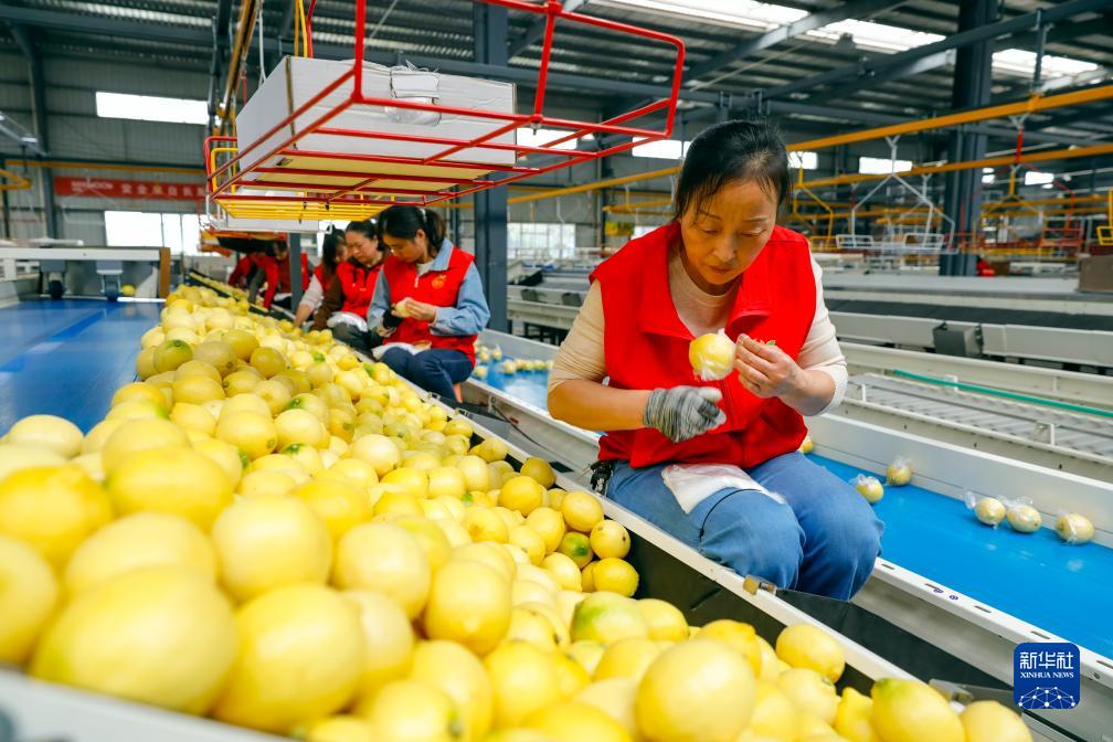 10月31日,在位于四川資陽(yáng)市安岳縣的四川省維記農業(yè)集團有限公司,工人包裝分揀好的新鮮檸檬。