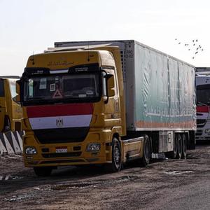 數百輛載有救援物資的卡車(chē)在拉法口岸埃及一側等待進(jìn)入加沙。