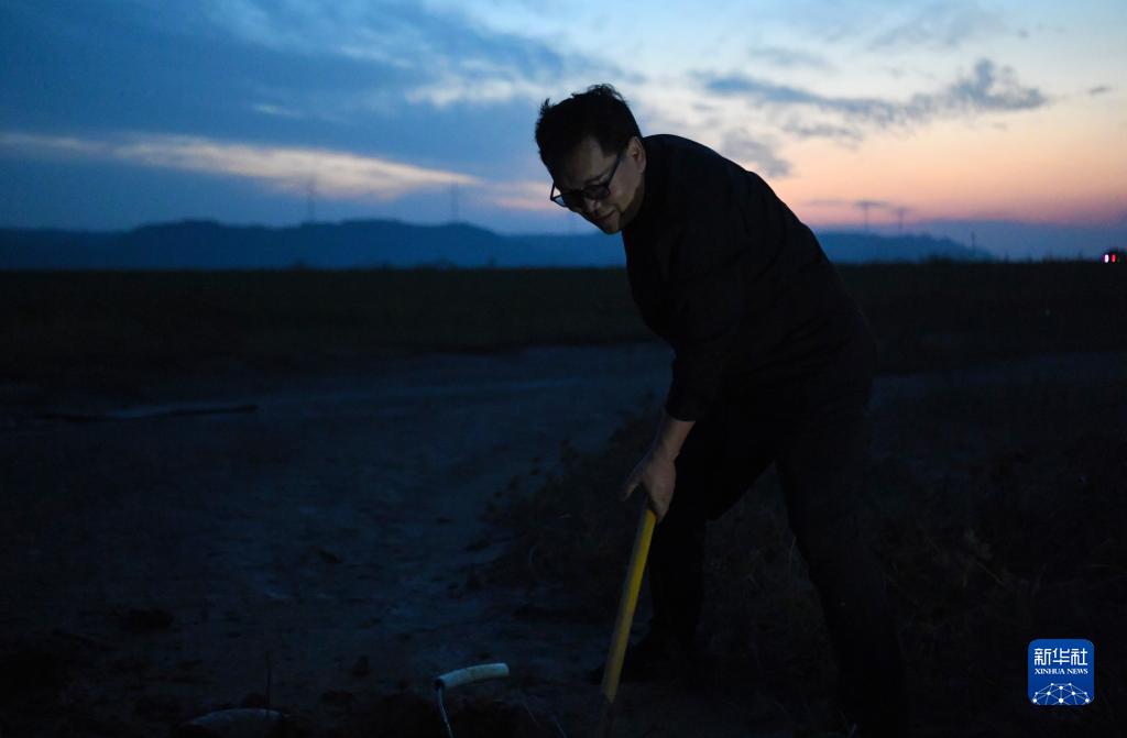 10月31日黃昏時(shí)分,王建在河南省武陟縣黃河岸邊采泥。