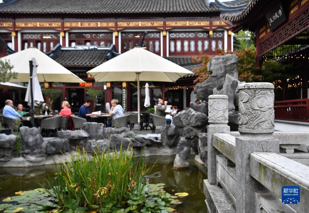 9月28日,人們在德國漢堡豫園餐廳用餐。