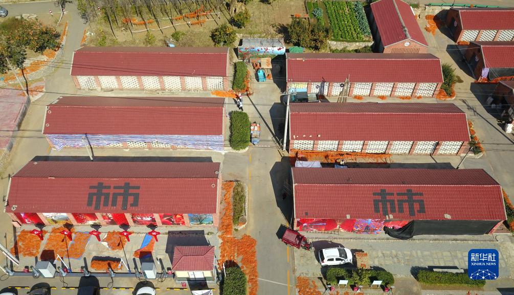 11月1日,在山東省濰坊市臨朐縣五井鎮,村民在晾曬柿子(無(wú)人機照片)。