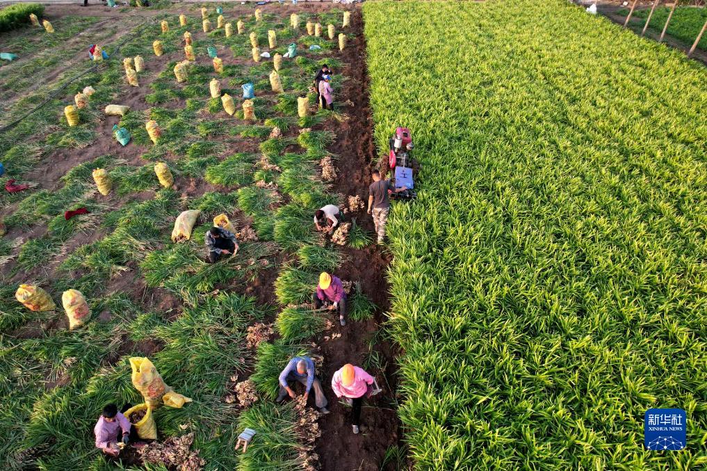 10月31日,河南省博愛(ài)縣鴻昌街道的農民在收獲懷姜(無(wú)人機照片)。