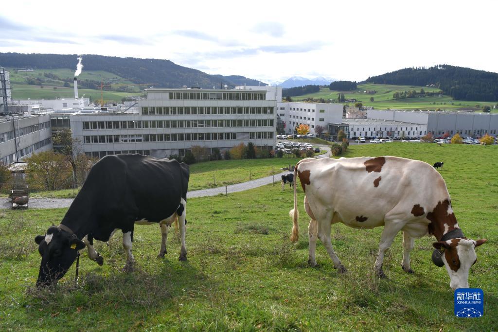 這是10月31日在瑞士科諾爾芬根雀巢工廠(chǎng)外的牧場(chǎng)拍攝的奶牛。