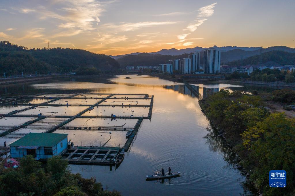 11月1日,建德市大洋鎮的大洋螃蟹養殖戶(hù)在養殖水域捕撈螃蟹(無(wú)人機照片)。