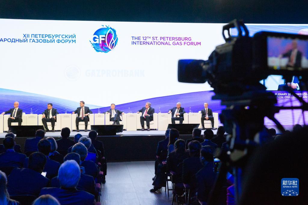 這是11月1日在俄羅斯圣彼得堡拍攝的第十二屆圣彼得堡國際天然氣論壇全體會(huì )議現場(chǎng)。
