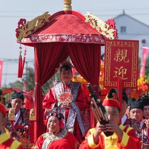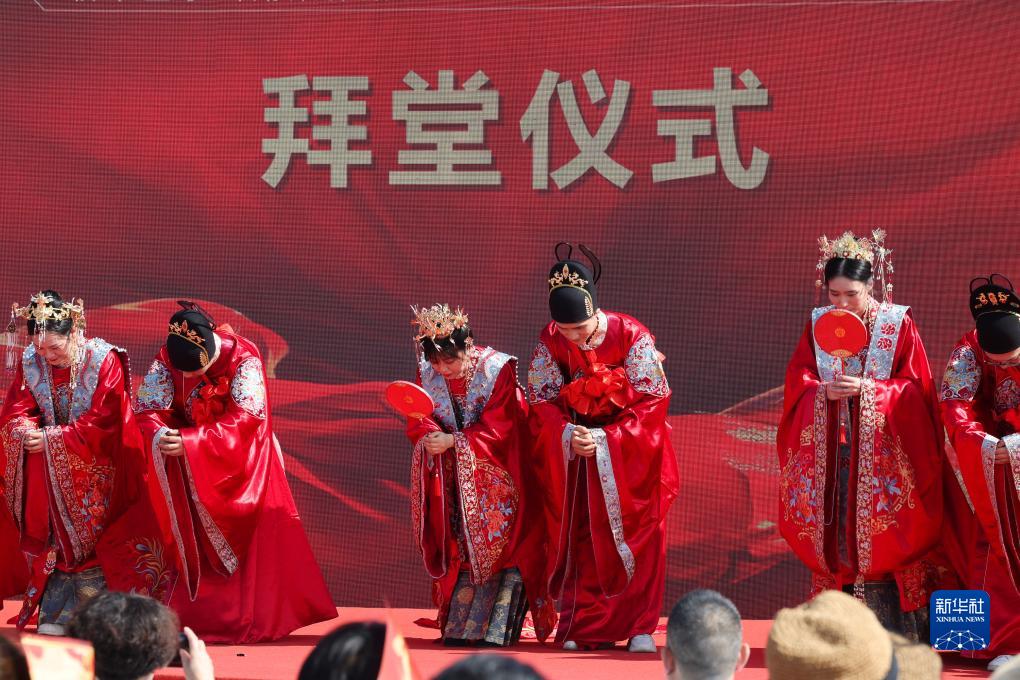 坐上大花轎、走過(guò)合歡橋、跨過(guò)紅火缸、同乘幸福船……11月3日,一場(chǎng)“良緣水鄉締 佳偶自天成”水鄉集體婚禮在浙江省杭州市臨平區塘棲鎮丁河村新建成的“丁山湖魚(yú)鷹愛(ài)情故事婚禮基地”舉行。八對新人在村民和游客的見(jiàn)證下喜結良緣,并發(fā)出《婚俗改革倡議書(shū)》,向廣大適婚青年傳播新時(shí)代的婚戀觀(guān),倡導健康文明的嫁娶新風(fēng)尚。該婚禮基地依托水鄉風(fēng)貌,已成為當地特色鄉村文旅品牌。