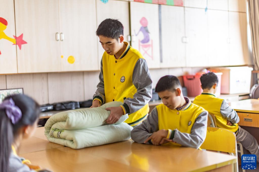 10月30日,在重慶市特殊教育中心的教室內,幾名六年級的視力障礙學(xué)生進(jìn)行疊被子生活技能小比賽。