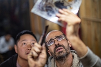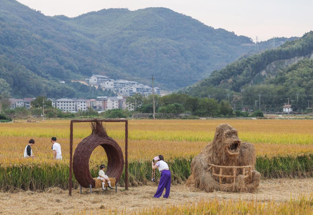 在新疆沙灣市,農機手駕駛采棉機在棉田中作業(yè)(10月27日攝,無(wú)人機照片)。