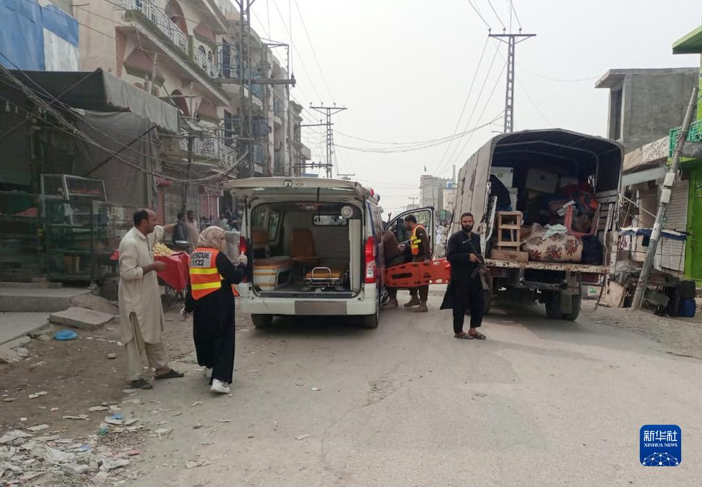 11月3日,在巴基斯坦開(kāi)伯爾-普什圖省德拉伊斯梅爾汗地區,安全人員和救援人員到達爆炸現場(chǎng)。