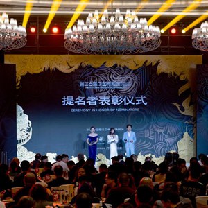 這是11月3日拍攝的第36屆中國電影金雞獎提名者表彰儀式現場(chǎng)。