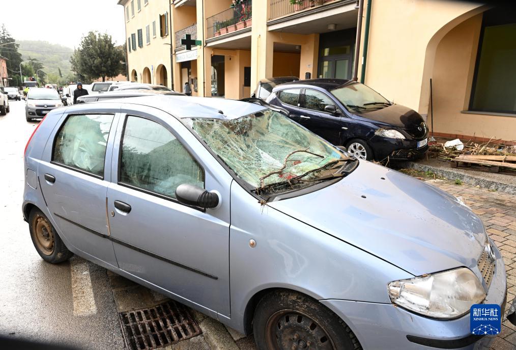 11月3日,在意大利托斯卡納大區比森齊奧營(yíng),車(chē)輛遭風(fēng)暴毀壞。新華社發(fā)