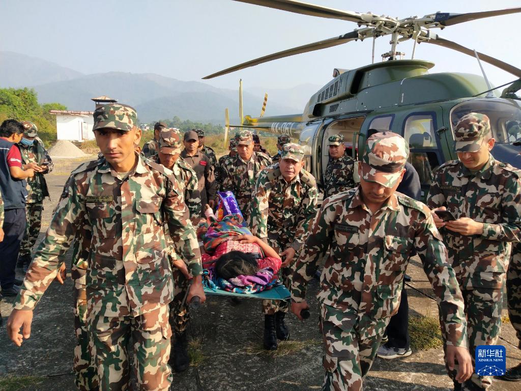 11月4日,尼泊爾軍方人員在尼泊爾西部扎澤爾果德參與救援行動(dòng)。