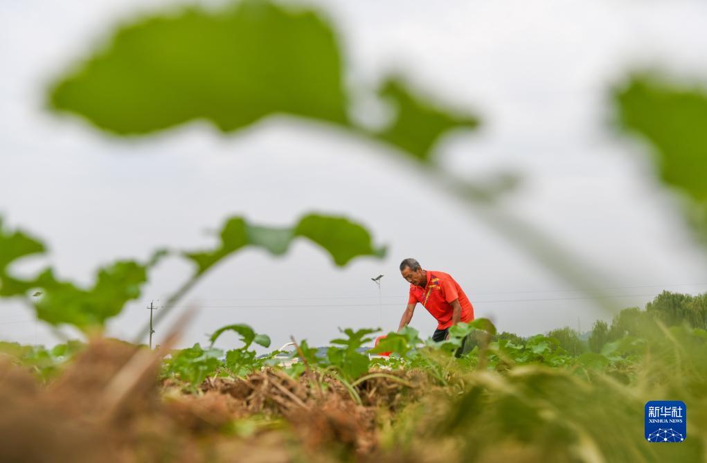 11月4日,在湖南省永州市道縣蚣壩鎮光家嶺村,農民在油菜田里澆水肥。