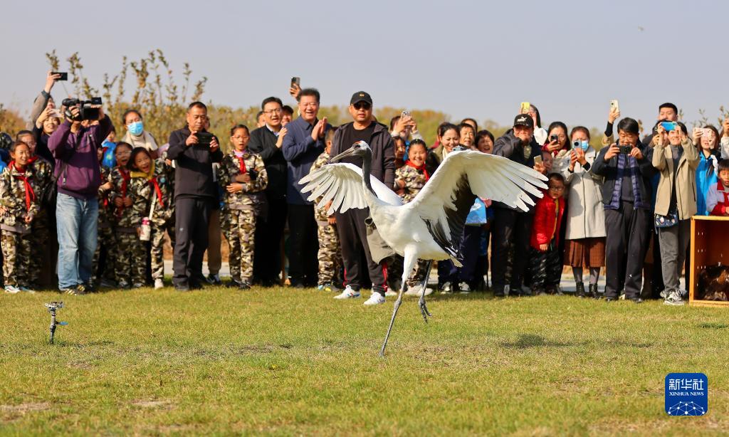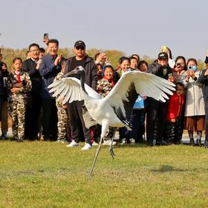 11月4日,國家一級保護動(dòng)物丹頂鶴被放飛。