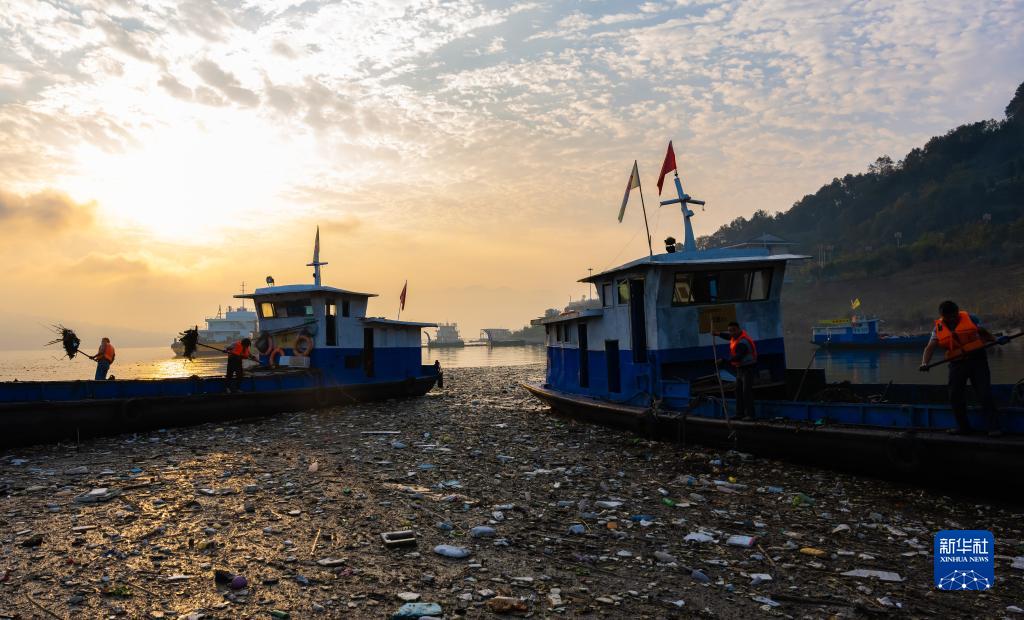 今年汛后三峽水庫蓄水至175米水位以后,水庫兩岸消落帶上的枯枝、秸稈、塑料等漂浮物聚集江面。位于三峽壩上庫首的湖北省宜昌市秭歸縣積極組織清漂作業(yè)人員和機械作業(yè)船舶,進(jìn)行全天候攔截清理,以確保三峽水庫水質(zhì)、船舶行駛和三峽樞紐運行安全。
