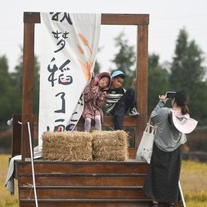11月4日,小朋友在南潯區雙林鎮萬(wàn)畝稻蝦綜合種養示范區游覽、拍照。