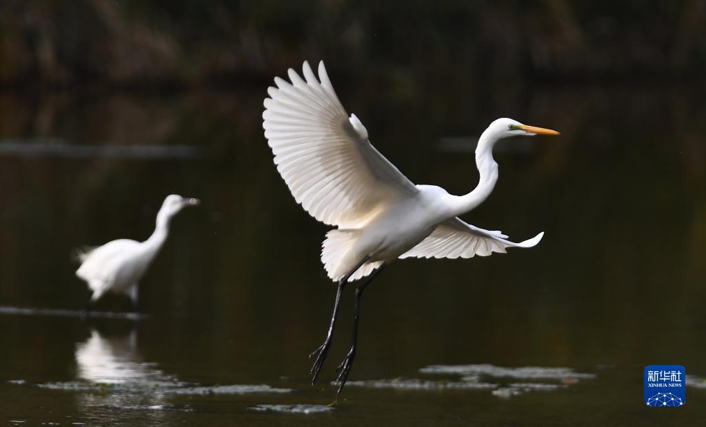 金秋時(shí)節,眾多鷺鳥(niǎo)在山東省滕州市上善公園水域覓食、嬉戲,構成一道靚麗風(fēng)景。