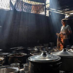 11月3日,在加沙地帶南部城市拉法,人們在煤氣中斷后用柴火做飯。