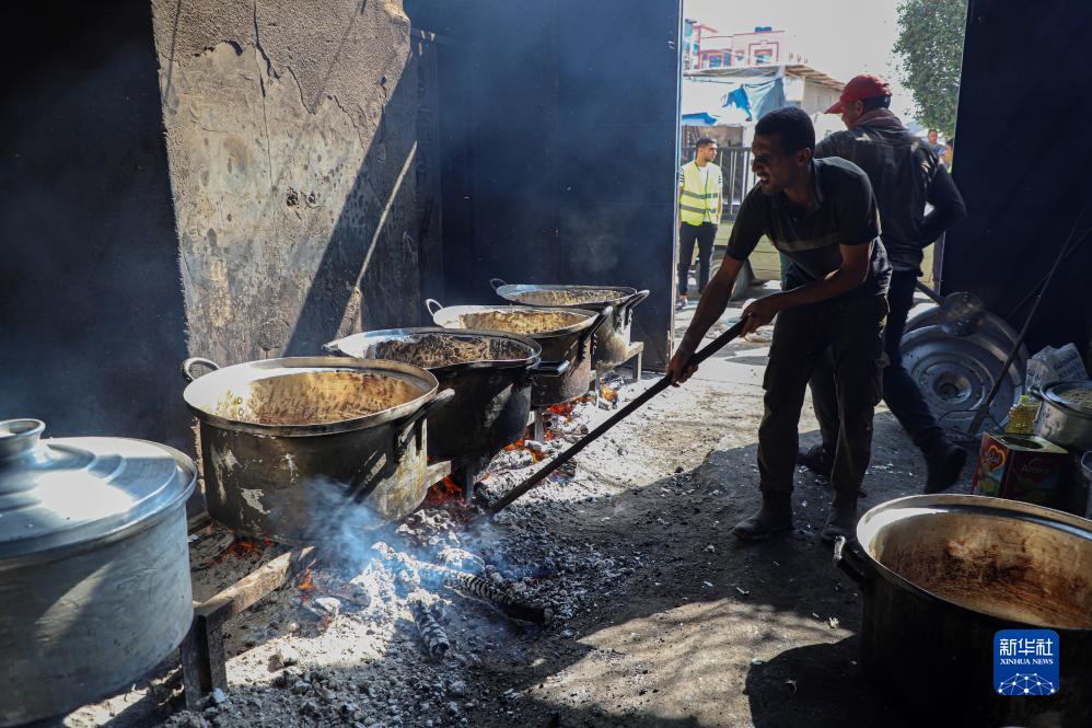 11月3日,在加沙地帶南部城市拉法,人們在煤氣中斷后用柴火做飯。