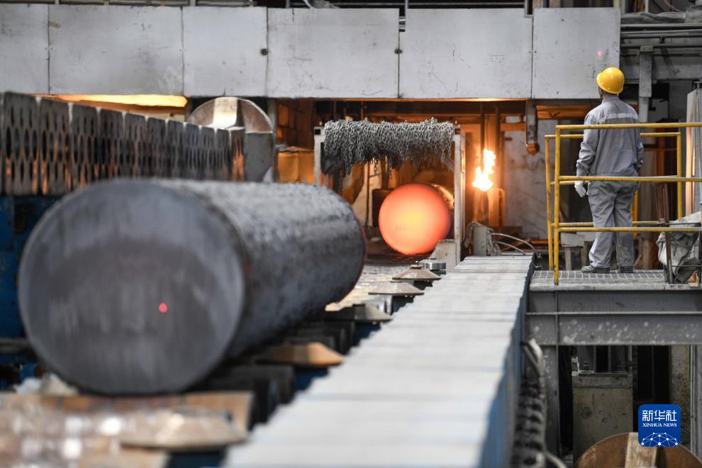 11月4日,在承德市營(yíng)子區一家特殊鋼生產(chǎn)企業(yè),工人查看切割后圓坯斷面情況。