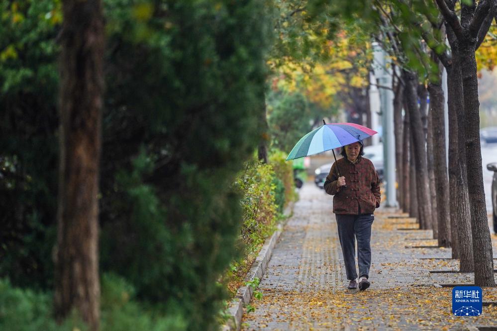 11月5日,北京市民在雨中出行。