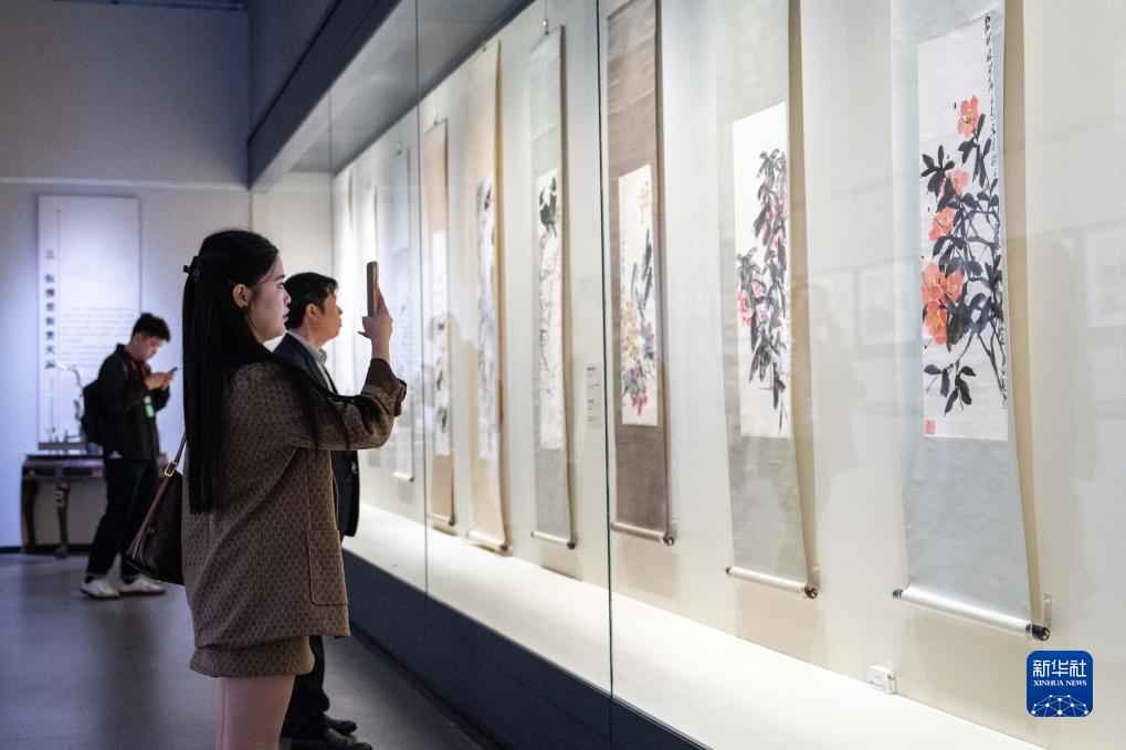 11月5日,在湘潭市博物館,觀(guān)眾在觀(guān)看齊白石作品。