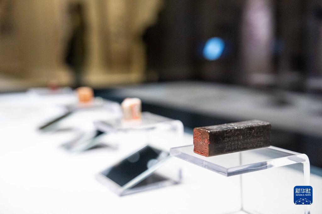 這是11月5日在湘潭市博物館拍攝的齊白石印章作品。