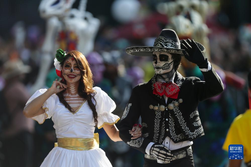 11月4日,在墨西哥首都墨西哥城,演員參加亡靈節游行。