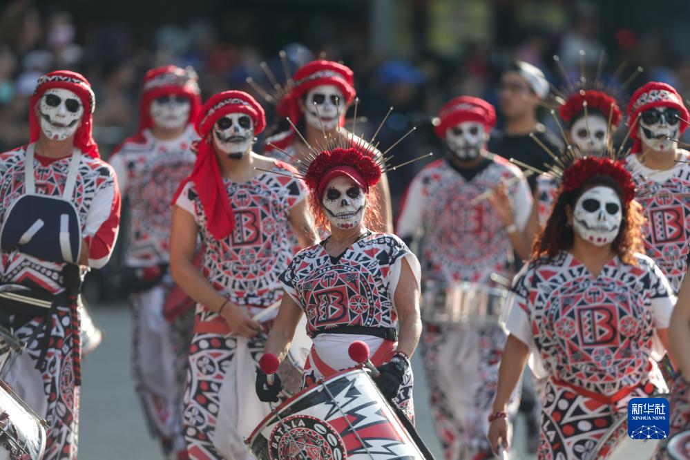 11月4日,在墨西哥首都墨西哥城,演員參加亡靈節游行。