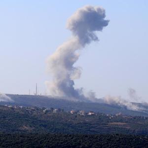 這張11月4日在黎巴嫩南部泰爾哈爾法鎮拍攝的照片顯示,納古拉山遭以色列戰機空襲后冒出濃煙。
