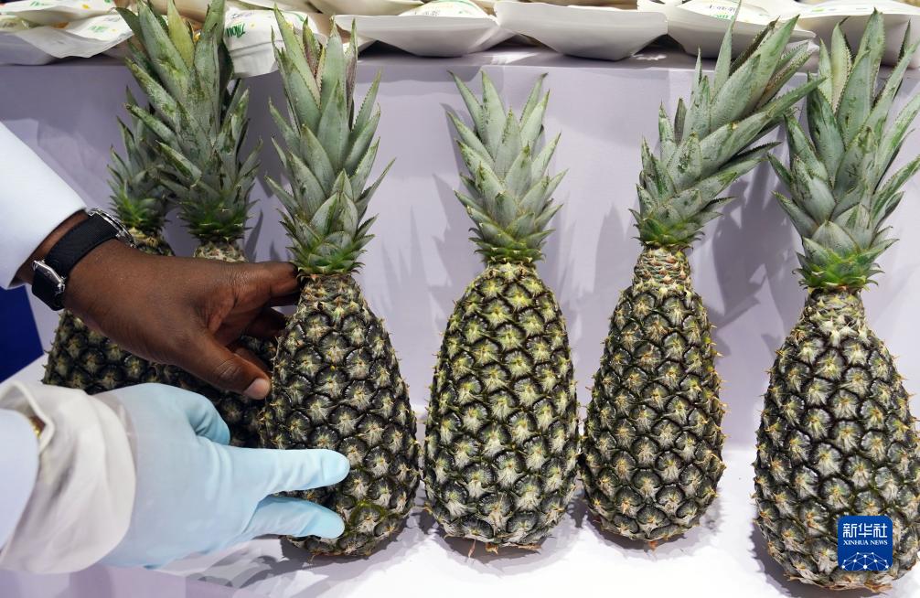 11月5日在第六屆進(jìn)博會(huì )食品及農產(chǎn)品展區拍攝的首次亮相中國的貝寧菠蘿。