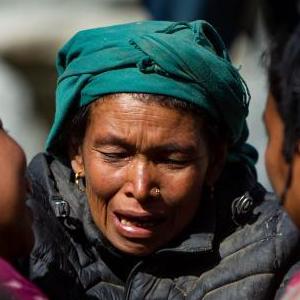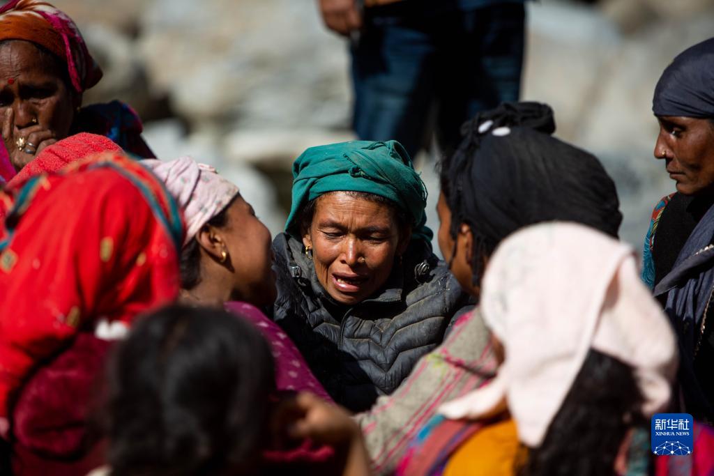 11月5日,在尼泊爾魯古姆西區,人們因親人的離去悲痛不已。