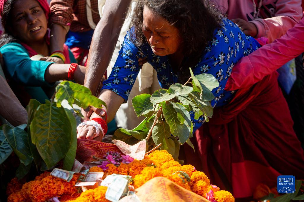 11月5日,在尼泊爾魯古姆西區,人們因親人的離去悲痛不已。