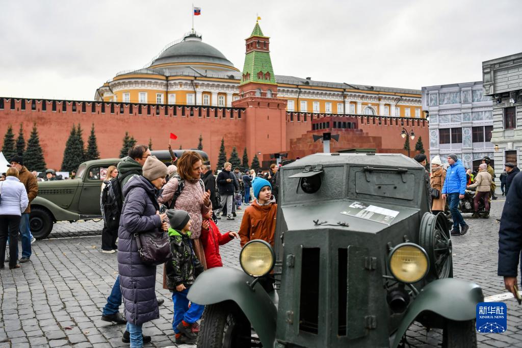 11月5日,在俄羅斯首都莫斯科,人們參觀(guān)以紀念1941年蘇聯(lián)紅場(chǎng)閱兵式為主題的露天展覽。