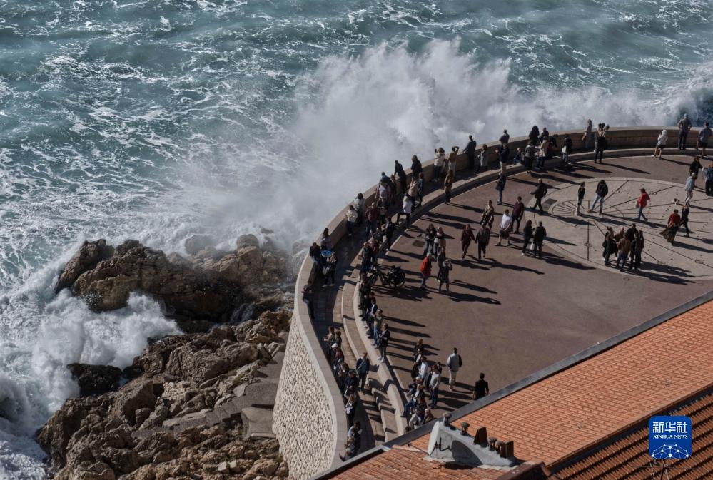 近日,受風(fēng)暴天氣影響,法國尼斯海岸巨浪拍岸,吸引人們駐足觀(guān)看。