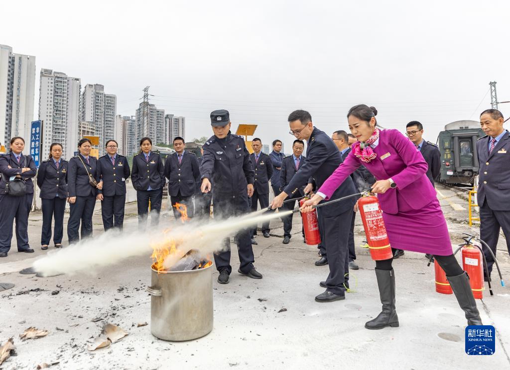 11月6日,重慶鐵路公安處消防支隊民警指導鐵路工作人員使用滅火器滅火。
