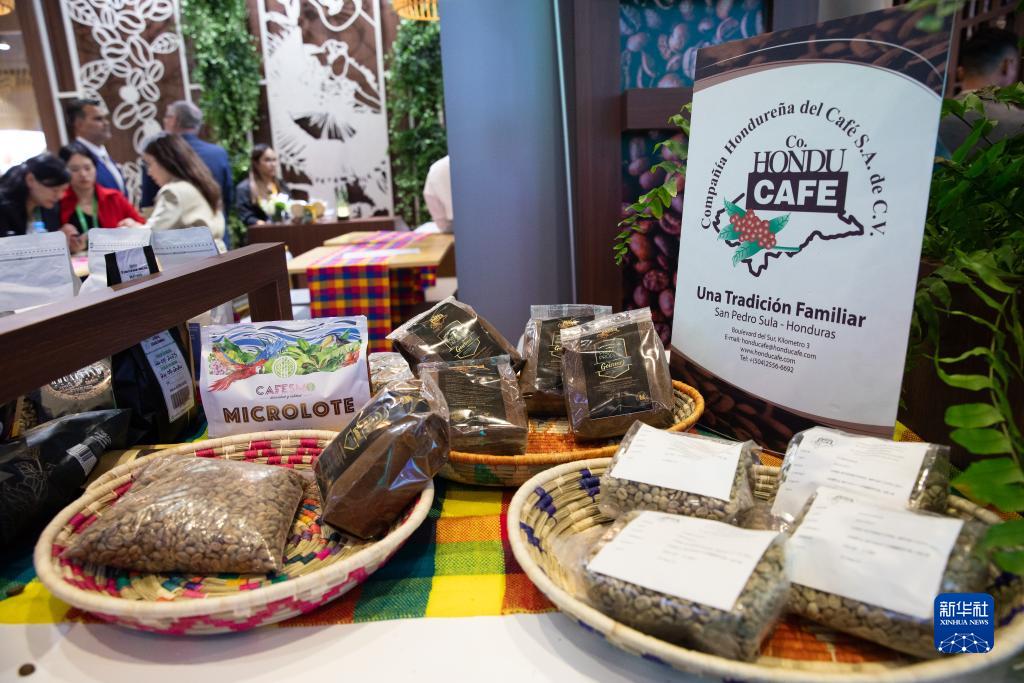 11月6日,參觀(guān)者在第六屆進(jìn)博會(huì )國家展洪都拉斯展臺咨詢(xún)咖啡豆等展品信息。
