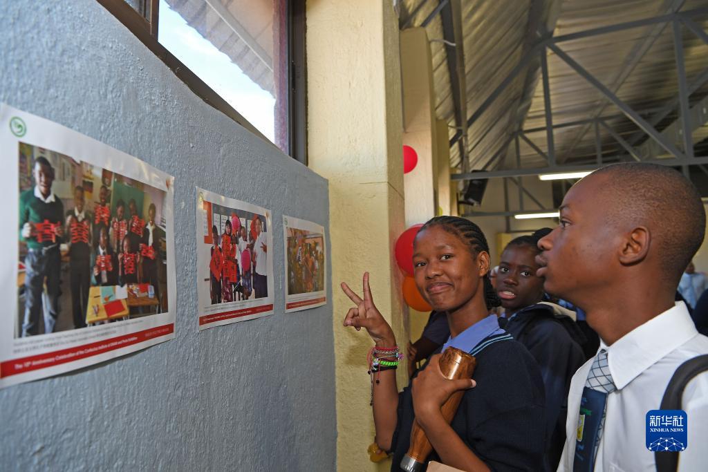 11月6日,學(xué)生在納米比亞溫得和克舉行的納米比亞大學(xué)孔子學(xué)院建院十周年慶典上觀(guān)看圖片展。