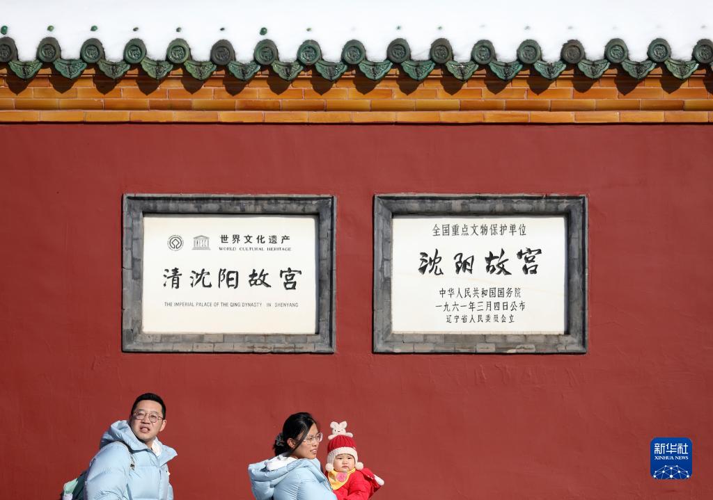 11月7日,游客走在雪后的沈陽(yáng)故宮門(mén)前。
