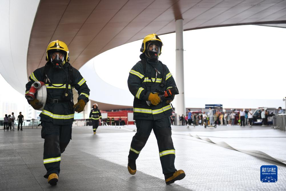 11月7日,在港珠澳大橋珠海公路口岸,澳門(mén)消防員在演練中。