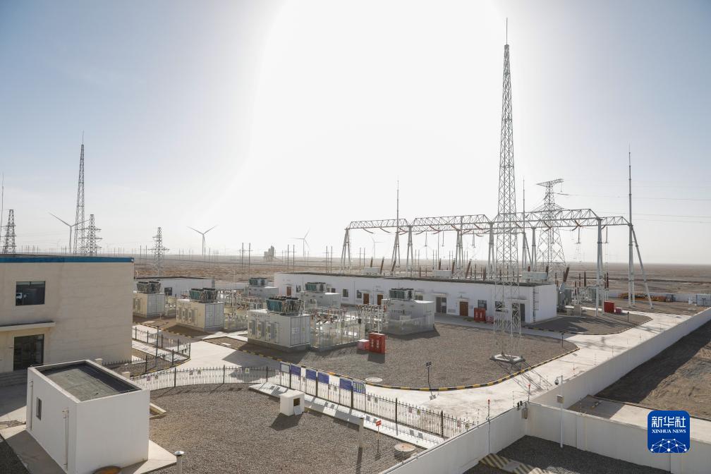 這是11月7日在甘肅省酒泉市瓜州縣泰源橋南第三風(fēng)電場(chǎng)拍攝的升壓站。
