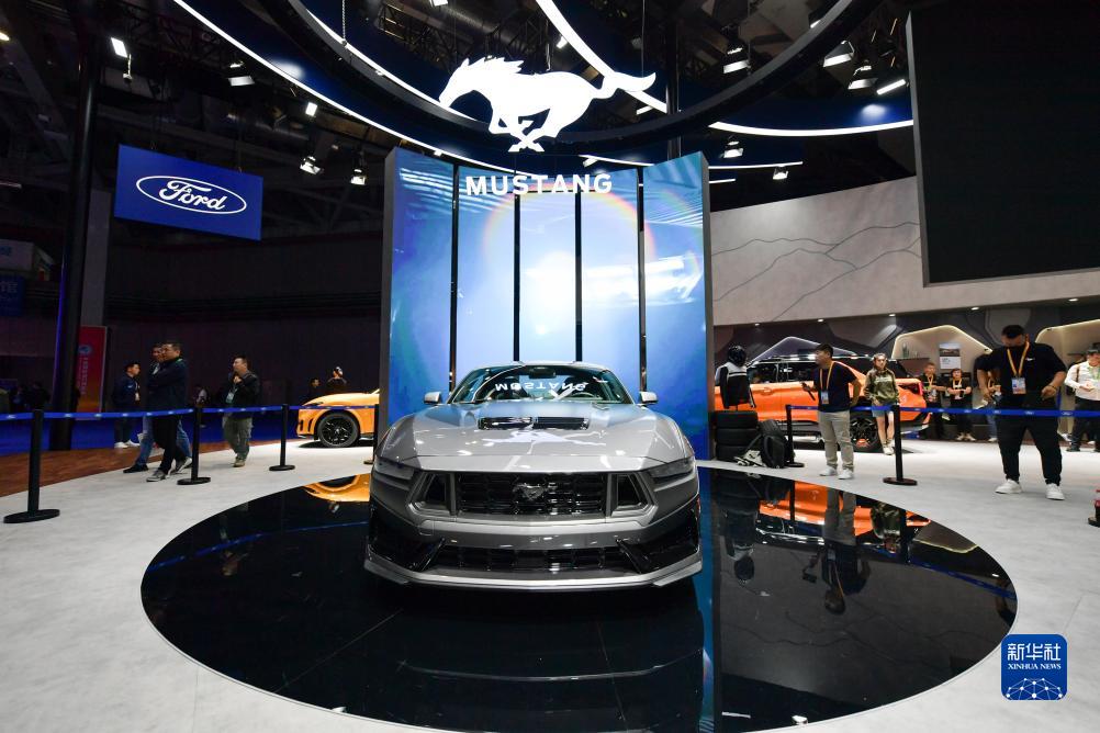 11月6日在第六屆進(jìn)博會(huì )汽車(chē)展區福特汽車(chē)展臺拍攝的Mustang Dark Horse跑車(chē)。