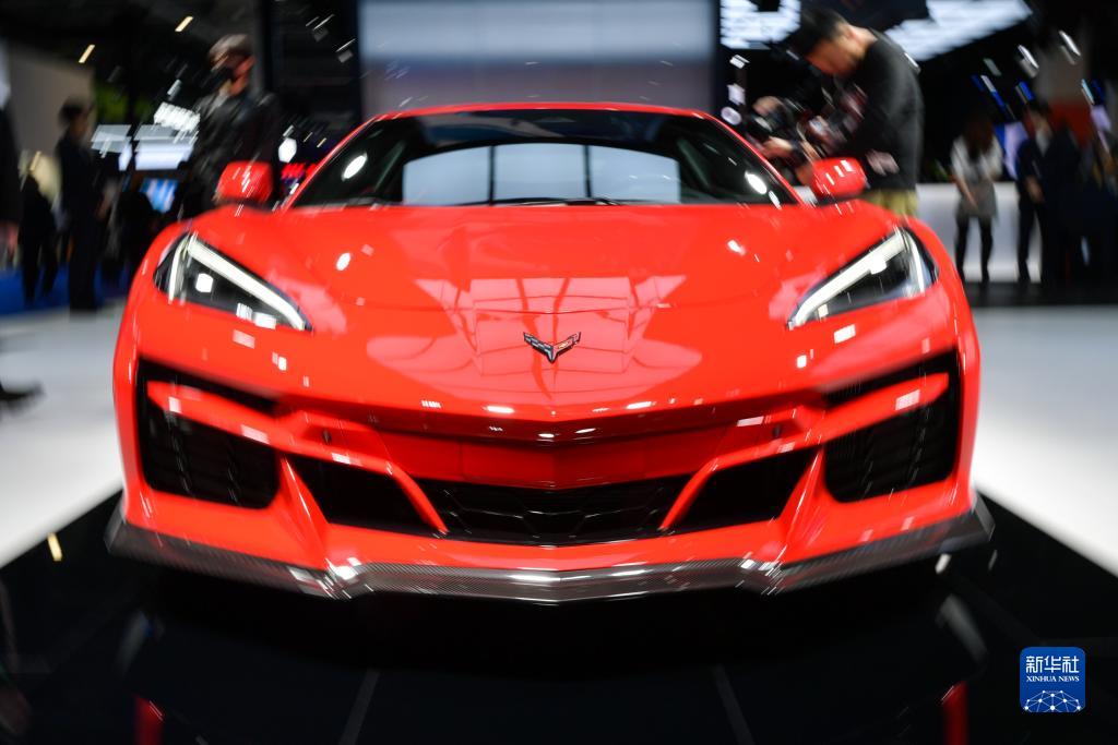 11月6日在第六屆進(jìn)博會(huì )汽車(chē)展區拍攝的雪佛蘭科爾維特E-Ray混動(dòng)跑車(chē)。
