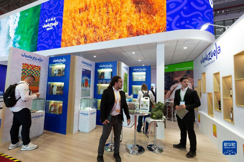 11月6日在第六屆進(jìn)博會(huì )國家展拍攝的委內瑞拉展臺。