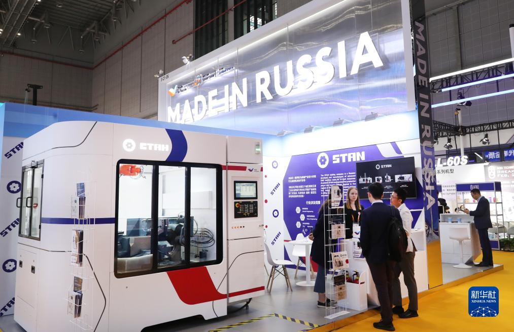 11月7日,參觀(guān)者在第六屆進(jìn)博會(huì )技術(shù)裝備展區的俄羅斯企業(yè)聯(lián)合展臺與展方工作人員交流。