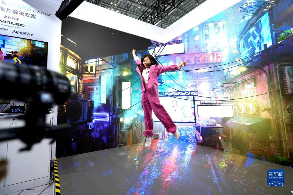 11月7日,在第六屆進(jìn)博會(huì )技術(shù)裝備展區,觀(guān)眾與“虛擬制片”設備進(jìn)行互動(dòng)。