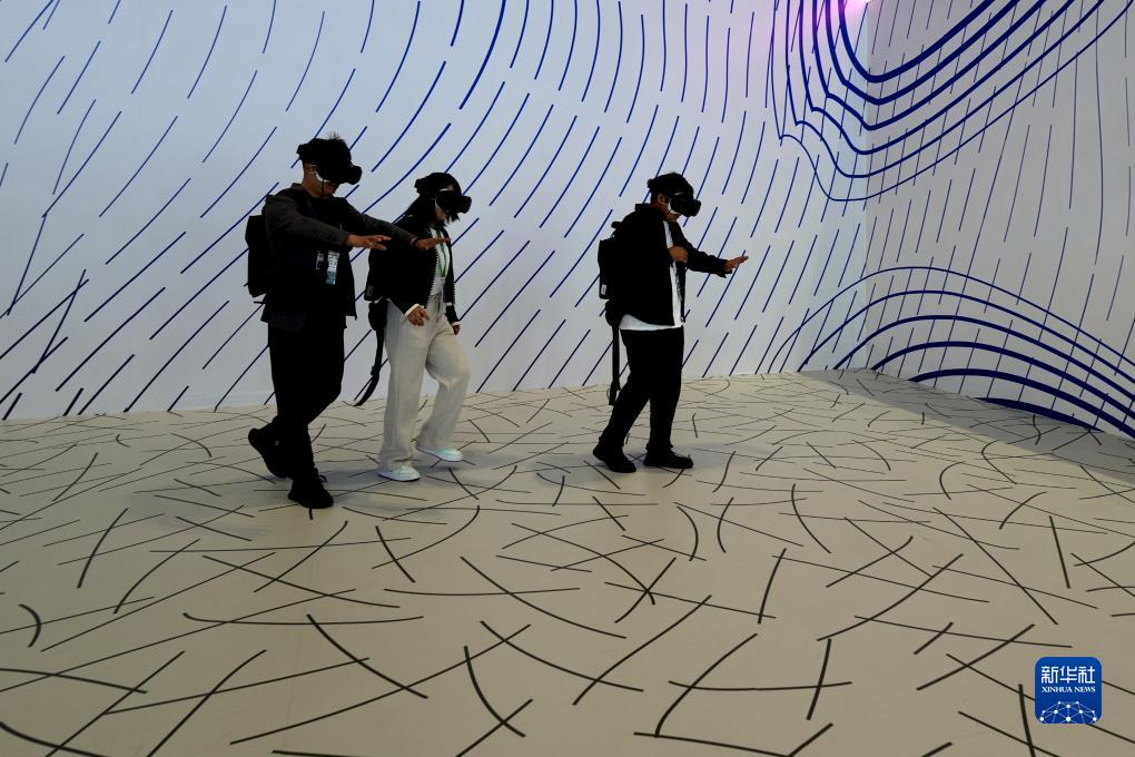 11月7日,在第六屆進(jìn)博會(huì )技術(shù)裝備展區,觀(guān)眾體驗“VR行走沉浸劇場(chǎng)”。