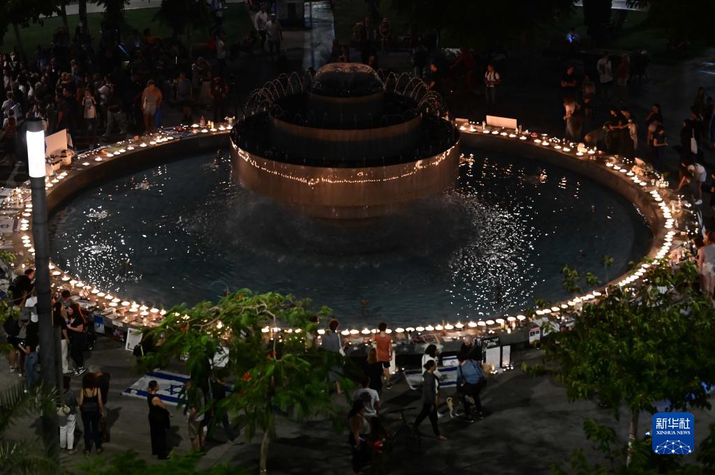11月7日,在以色列特拉維夫,人們向死者寄托哀思,并為被挾持的人員祈禱。