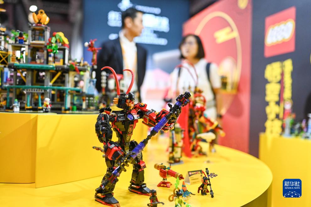 11月6日,在第六屆進(jìn)博會(huì )消費品展區樂(lè )高集團展臺,參展商向參觀(guān)者介紹樂(lè )高玩具。