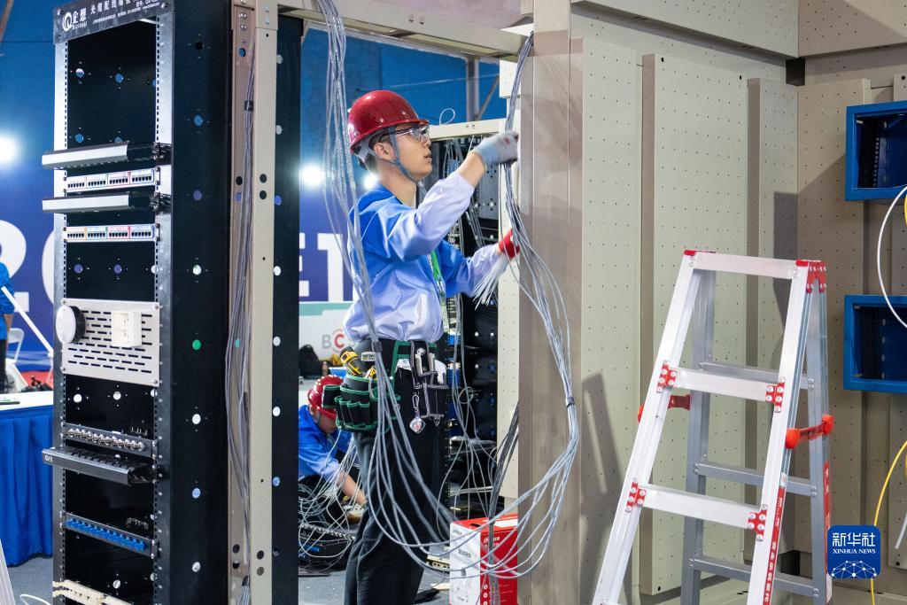 11月8日,在長(cháng)沙賀龍體育中心,參賽選手在進(jìn)行信息網(wǎng)絡(luò )布線(xiàn)項目的比拼。